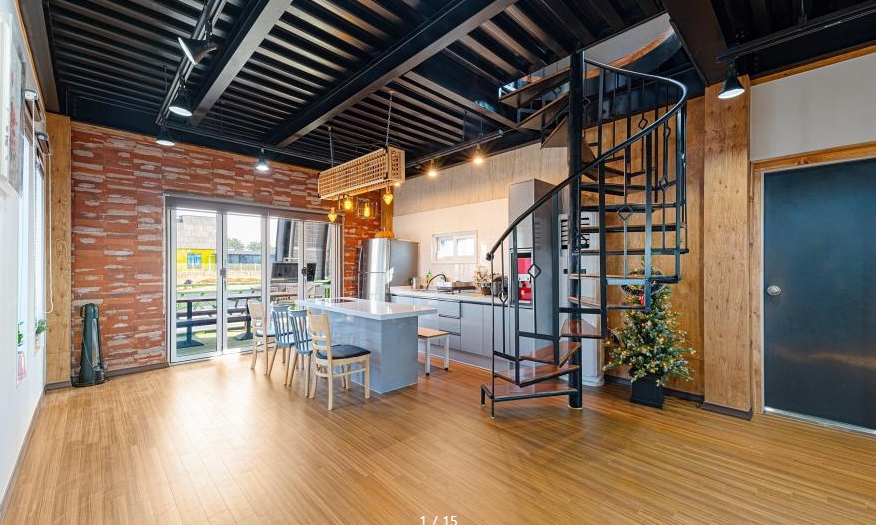 첫째는 도로 등 교통이 잘 되어 있고, 현장엔 1층과 2층으로 이뤄진 건물 내부에 15명까지도 수용할 수 있는 휴식 공간이 최신식으로 이뤄져 있다.
